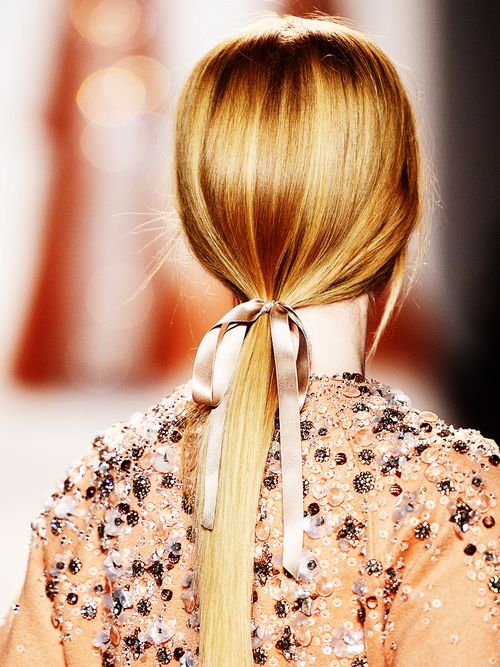Per un look super classy e minimal, provate la coda bassa chiusa con un nastro di seta, come visto in diverse sfilate di questo Fashion Month.