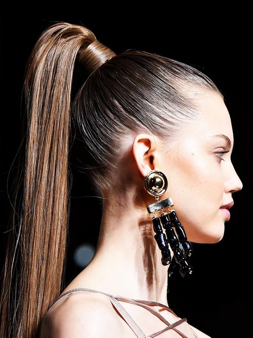 Altissima, tiratissima, rigorosamente con elastico invisibile come sulle passerelle di Balmain. Perfetta con un paio di orecchini chandelier.