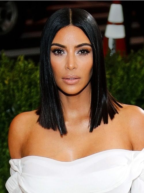 Focus sullo sguardo e sui capelli extra sleek per Kim Kardashian.
