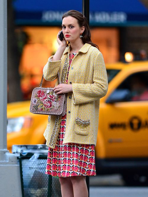 Direttamente dalla sesta stagione, un outfit di Blair davvero ricercato: il cappotto in tweed pastello è firmato Dolce & Gabbana, la borsa è di Valentino, l'abito printed è di Lyn Devon. Un mix sofisticato da copiare ancora oggi!