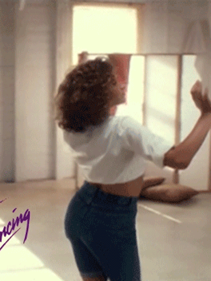 Allenamenti su allenamenti... ed ecco che la scintilla tra Baby e Johnny scocca e non c'è modo di fermarla. Sulle note di "Cry to Me" i due si lanciano in un ballo appassionato, stretti uno all'altra. Baby indossa un top ricamato super hot e dei jeans total white (se li volete identici anche voi, vi conviene consultare il nostro elenco dei marchi denim più cool di sempre)... ma alla fine della scena, tutto finisce a terra! Un momento memorabile...