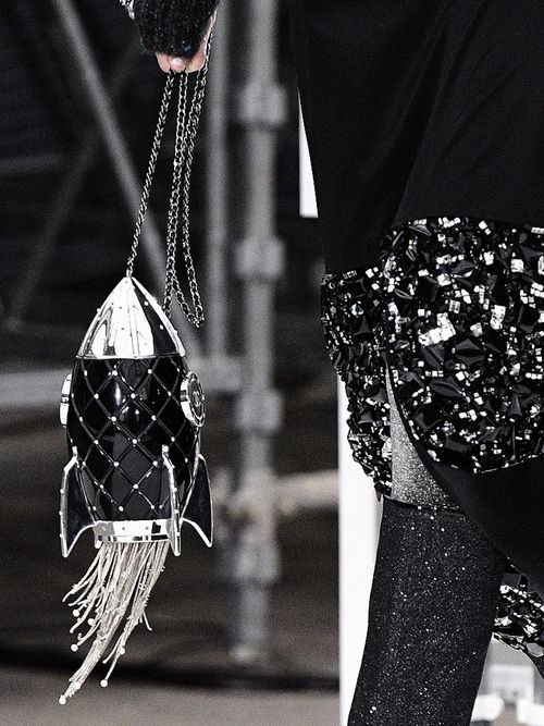 Per il prossimo autunno-inverno Karl Lagerfeld ha creato tantissime borsette a tema spaceship, da quella circolare a forma di luna a quella che ha le sembianze di un razzo. Galattiche.