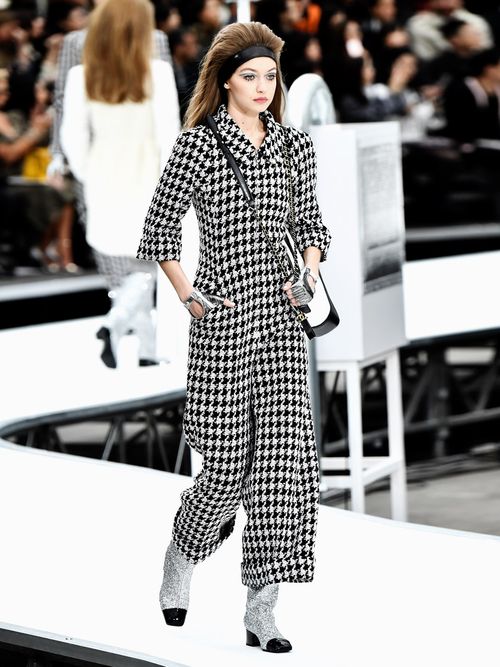 Il pied-de-poule era un po' che non si vedeva sul catwalk - quindi immaginatevi il nostro colpo al cuore quando è comparso addosso a Gigi Hadid. Decisamente la tuta spaziale più elegante che i nostri occhi abbiano mai visto.