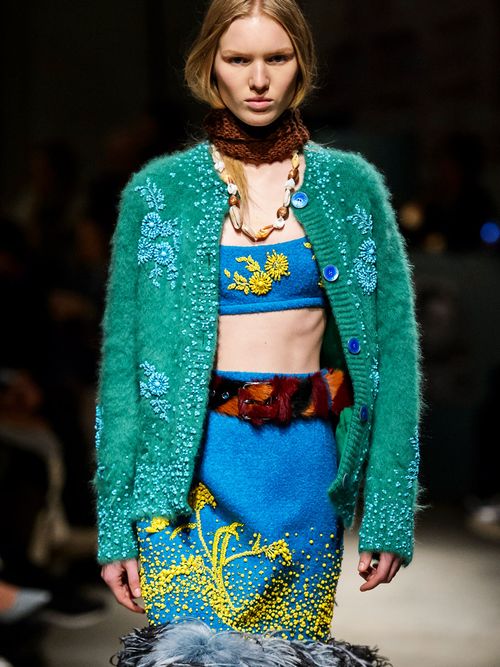 Il maxi cardigan in lana mohair è il capo protagonista della sfilata Prada FW2017/2018.