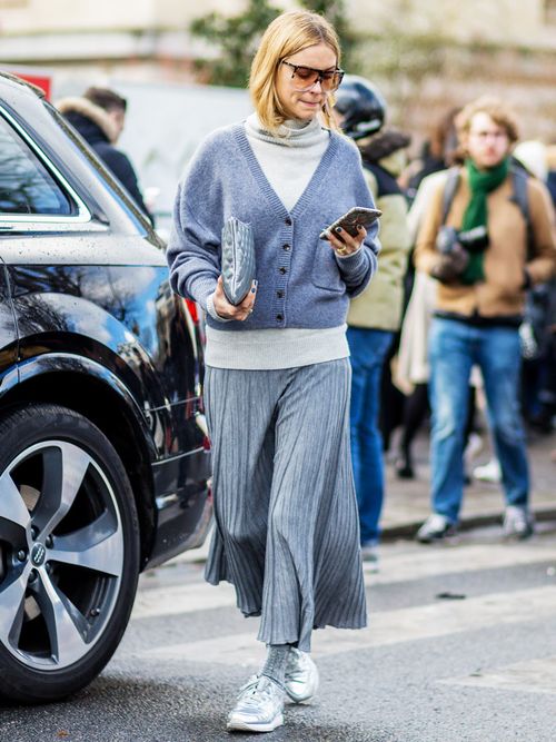 No worries: per seguire il trend non è necessario dilapidare il proprio stipendio in costosi maglioni firmati. A dimostrarlo è lo street style, che mostra come interpretare anche il più classico e semplice dei cardigan con stile. Il modello su cui puntare? In lana, dal taglio over e a bottoni. Da portare aperto o abbottonato, in abbinamento ad altri knit (layering 4.0) e t-shirt, gonne plissé e jeans flared. E non dimenticate le calze a vista. Vostra nonna non potrà che essere fiera di voi.