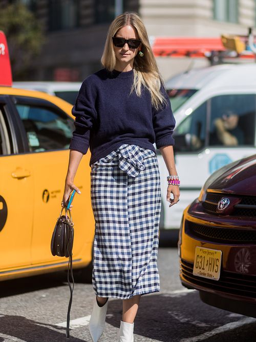 La gonna a quadri, leggera e di lunghezza midi, è una delle protagoniste della prossima primavera. Ma come indossarla senza sembrare la nostra vecchia prozia? Lo street style insegna: basta un light pullover tinta unita portato in-e-out per renderla subito cool. Ai piedi? un paio di stivaletti dal tacco squadrato.