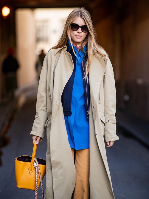 PARIS, FRANCE - OCTOBER 01: A guest wearing trench coat is seen outside A.P.C. during Paris Fashion Week Womenswear Spring/Summer 2019 on October 1, 2018 in Paris, France. (Photo by Christian Vierig/Getty Images)