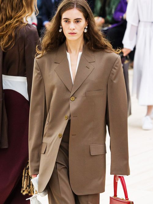 La classica giacca da ufficio per la primavera-estate 2017 riscopre il lato glamour grazie alla cintura da stringere in vita.