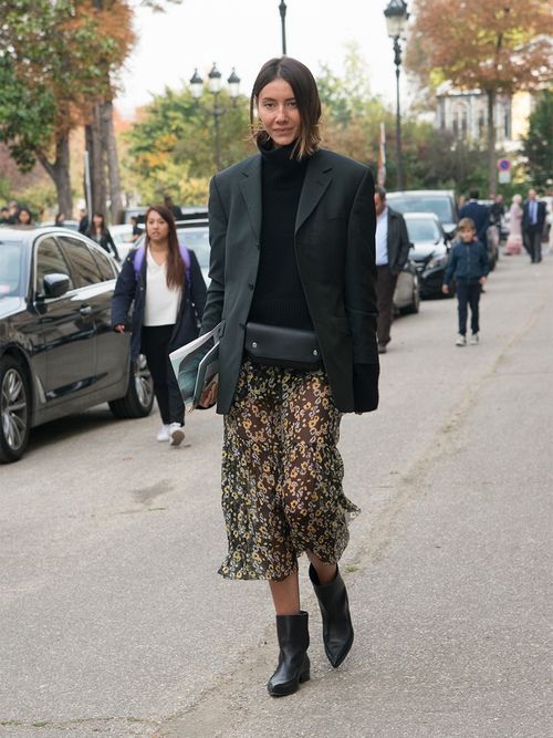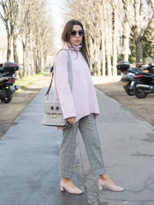 Indossare il maxi maglione cozy come se fosse un cappotto è una delle mode del momento: per seguirla con stile anche a novembre, l’importante è coprirsi sotto (per un layering perfetto, opta per una camicia bianca). L’abbinamento con i pantaloni in Principe di Galles, caldissimi e super cool, è ideale: da completare con un paio di décolleté (l’altezza decidetela voi). Très chic!