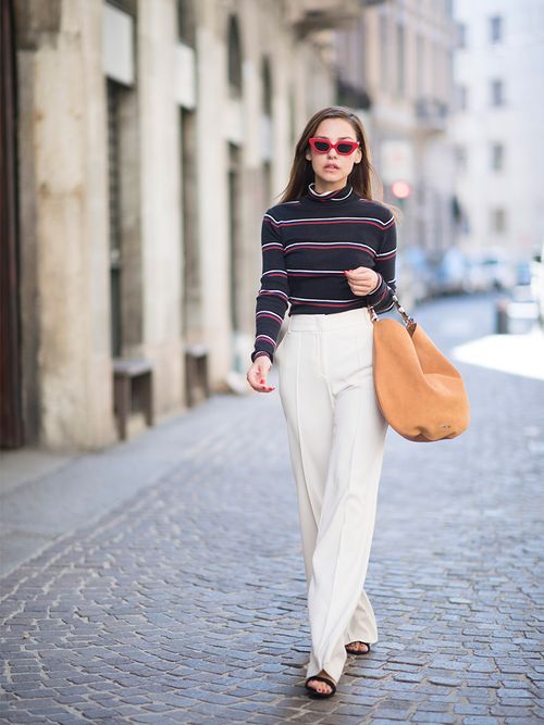 La blogger Sophie Eliseeva ha sfoggiato questo look semplice e portabile nel secondo giorno della Milano Fashion Week: chi non vorrebbe i suoi pantaloni palazzo?
