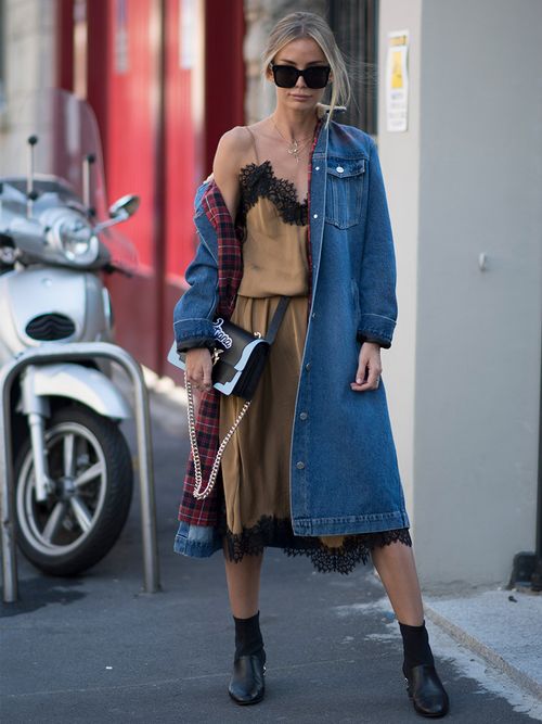 La fashion blogger lo abbina a un paio di ankle boots neri e alla giacca lunga in denim: un mix di contrasti vincente, davvero semplice da copiare!