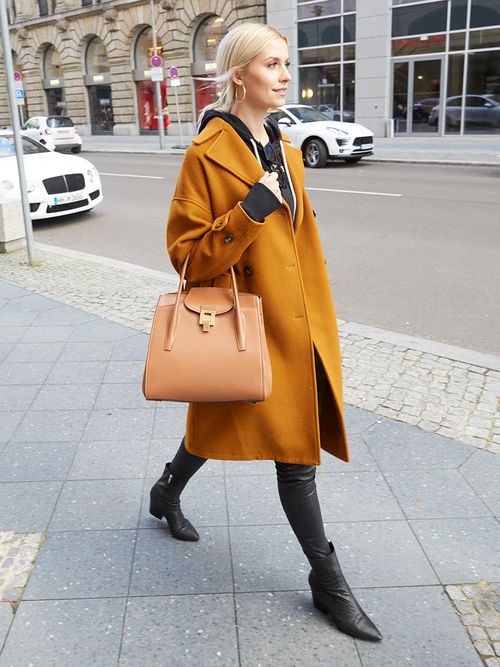 La top model Lena Gercke abbina la sua Bancroft marrone al cappotto cammello: perfect pair.
