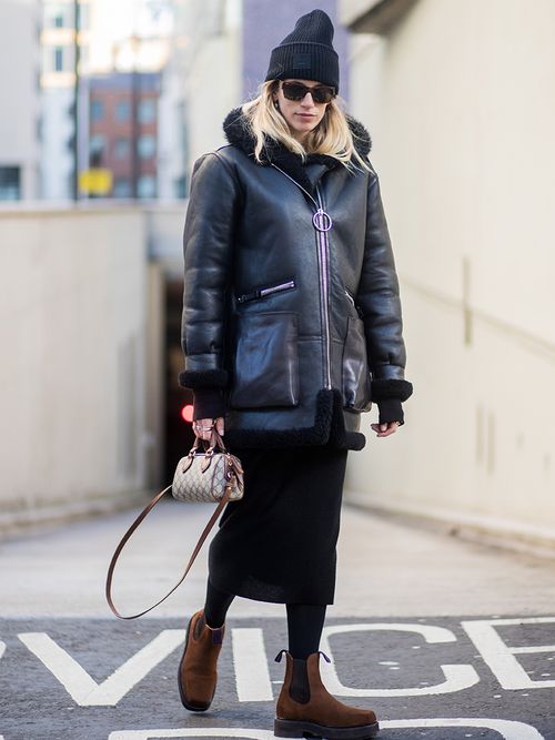 La gonna midi nera aderente è uno di quei capi che ruberemmo subito alla blogger Veronika Heilbrunner. Il suo look è a dir poco impeccabile: collant opaco, anfibi e maxi montone, per un #ootd casual ma ricercato. Emily Blunt dal canto suo mostra quanto può essere elegante un abito midi: la lunghezza 7/8 con colletto alto e maniche lunghe è incredibilmente moderna. Consiglio di styling: evitate di caricarlo di accessori, bastano un paio di mules o décolleté.