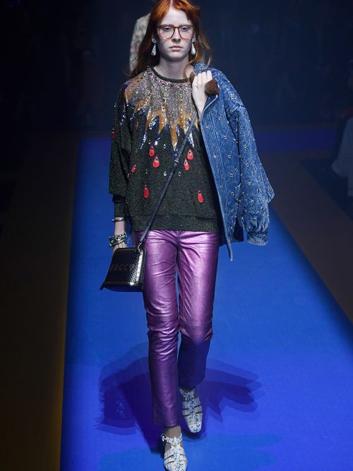 Gucci sdogana i metal pants anche per il giorno - e noi non potremmo essere più felici di questo dettaglio hot.