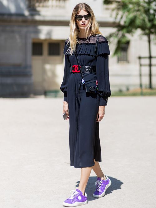 Veronika Heilbrunner opta per un paio di sneakers viola. Super hot!