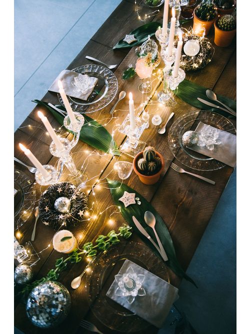 3 – Comprate tovaglioli, sottobicchieri e piatti che richiamino in qualche dettaglio il colore del punto 1. Scegliete poi stoviglie semplici: bicchieri in vetro o cristallo e posate silver.